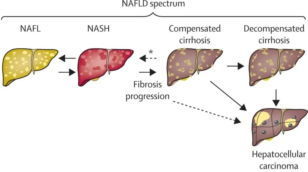 图1. 非酒精性脂肪肝到肝癌的演变历程